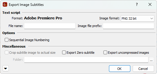 << Click to Display Table of Contents >> Navigation: Export Subtitles > Image Export Formats > Adobe Premiere Pro |