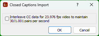 Besides the "Interleave" option for project's running at 23.976fps, there are no special configurations needed when importing Caption Inc. (.cin) files. EZConvert will automatically read all positioning and formatting information from it.