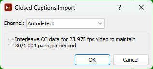 This option is available only when importing SCC files and allows EZConvert to read/import the data from one of the four CC data channels when different data is saved in them. The Autodetect option is sufficient for the most common case when the SCC file contains captioning data on one of its channels only. |