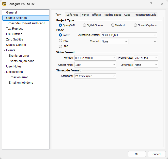 As you can see in the picture above here you can select the video format, fonts, margins, settings concerning the quality control and automatic fix subtitles, override the presentation style, etc.