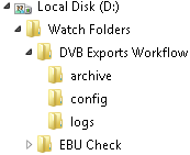 On the above example "D:\Watch Folders\DVB Exports Workflow" is the root folder. By default this is the input folder. The Watch process monitors it and when a new file arrives it is automatically processed.