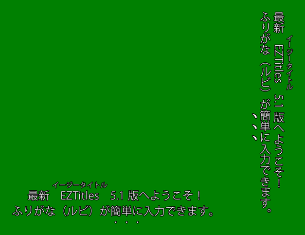 One of the unique features of the subtitles in East Asian languages is the possibility that they contain Ruby characters or Rubies. EZTitles provides a quick way for inserting Rubies by using the Phonetic Guide tool. It can also be used for emphasizing part of the text or it is also known as inserting a Bouten. The type of the emphasis, Bouten, character can in addition be configured from the Edit/Preferences/Vertical Text options menu.
