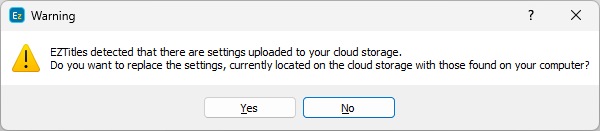 Note: If you have already activated the cloud services integration and you are joining EZTitles on a second workstation the program will detect that you already have settings on the cloud storage and will offer you the following choice: