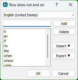 Allows word or phrase, separated by a space, to be entered in order to prevent subtitle lines ending with them, for example "a", "the", "that", etc.