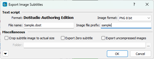 << Click to Display Table of Contents >> Navigation: Export Subtitles > Image Export Formats > DoStudio Authoring Edition |