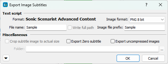 << Click to Display Table of Contents >> Navigation: Export Subtitles > Image Export Formats > Sonic Scenarist Advanced Content |