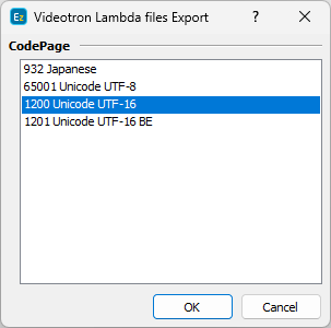 By proceeding with the export the following dialog will appear asking you to select Code Page for the output file: