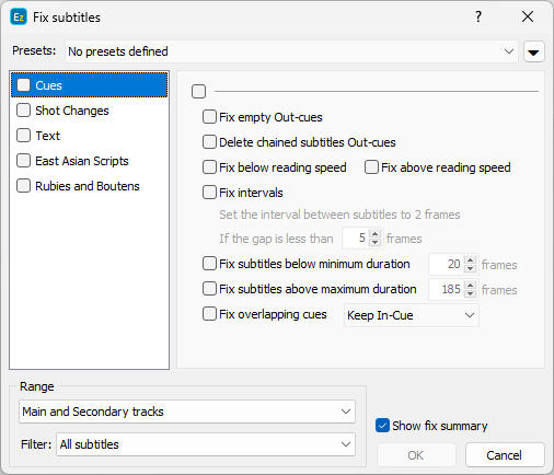<< Click to Display Table of Contents >> Navigation: Quality Control > Fix Subtitles > Cues category |