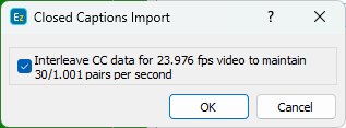 Changes how caption's timings are calculated for 23.976fps in accordance with the CEA-708-B standard. When the option is turned on, 3 pairs of CC data will be encoded for every other frame. And when it's turned off - 2 pairs of CC data will be encoded for every video frame. Or in other words, turning the option on allows 25% more text to be decoded over the same period of time which also accounts for decreasing the "time to process" required for each caption. Note: This option is available only when the project is configured for 23.976fps. Whether it's clicked on or off by default depends on how the same option is configured at the Project Settings/Safe Area menu. We don't recommend turning the option on when it isn't turned on in the Project Settings. And vise-versa. |