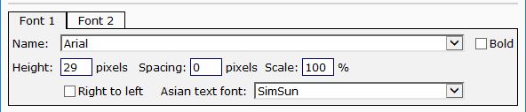 From here you can select the fonts along with other related attributes. Depending on the subtitles file type you are using there could be two pages "Font 1" and "Font 2" containing separate attributes for each font: