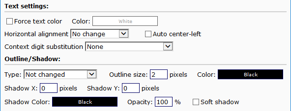 Leaves the Outline or Shadow effect as specified in the original subtitle file. |
